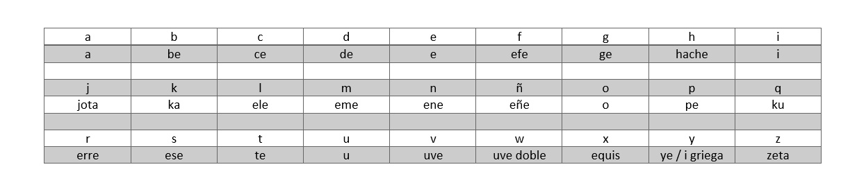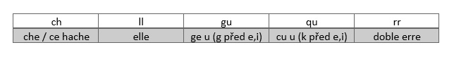 Podle Ortografía de la lengua española ve španělštině existuje pět spřežek (dvě písmena představující jeden zvuk): ch, ll, gu, qu a rr. Tyto spřežky se ve slovnících neklasifikují jako samostatné, ale jsou umístěné dle abecedního pořádku.