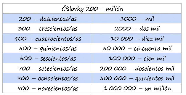 Počítaný předmět stojí za číslovkou bez předložky. Pouze millón a millardo vyžadují předložku "de".